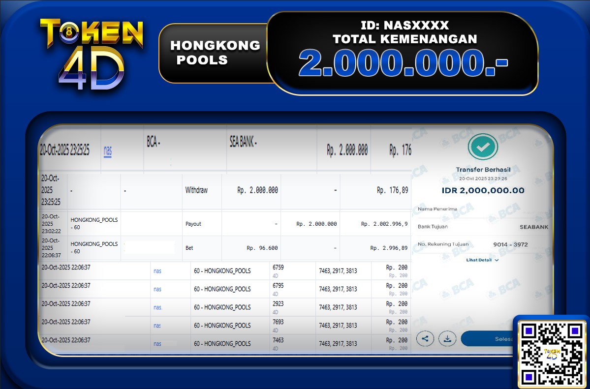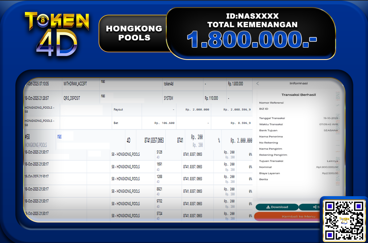 TOGEL HONGKONG POOLS – BUKTI JACKPOT SLOT TOKEN4D Selamat kepada member setia yang berhasil mendapatkan kemenangan fantastis di token4d. Kemenangan member dengan ID : NASXXX pada permainan TOGEL HONGKONG POOLS…