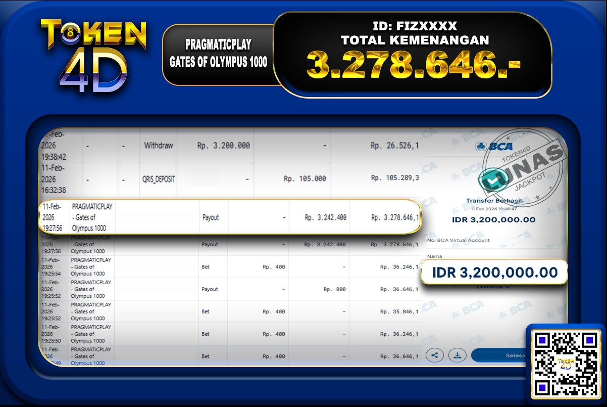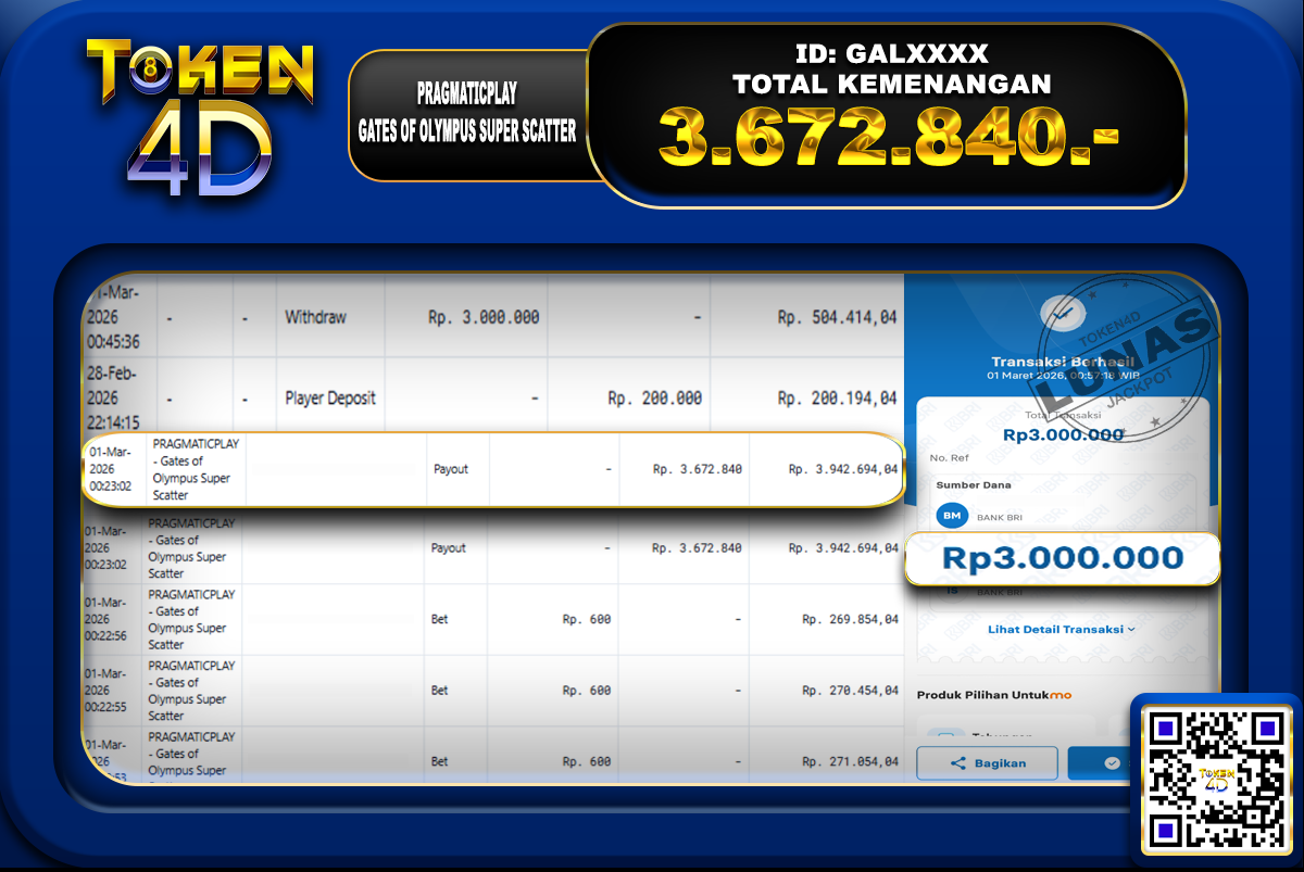 TOKEN4D JACKPOT GATES OF OLYMPUS SUPER SCATTER – BUKTI JACKPOT SLOT TOKEN4D Selamat kepada member setia yang berhasil mendapatkan kemenangan fantastis di token4d. Kemenangan member dengan ID : GALXXXX pada…
